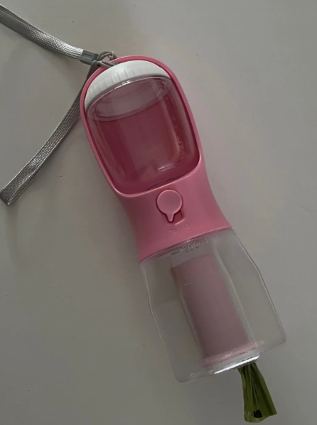 “Literally a lifesaver on hikes!”“Took this out for a weekend trip with my pup and wow — water, food, and poop bags all in one place? Genius. Also the bottle is super cute!”